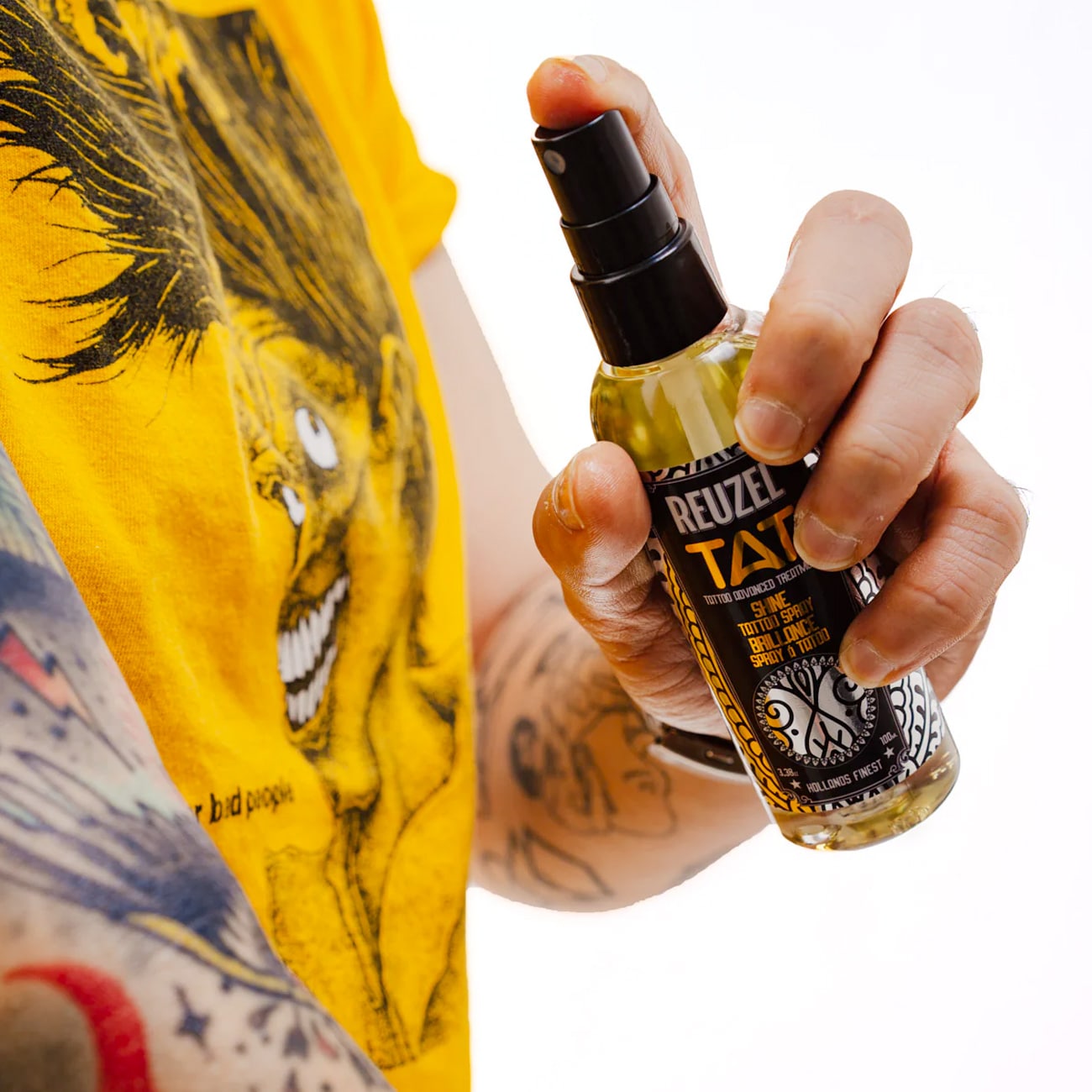 Kada izlazite uveče, pobrinite se da vaša tetovaža blista bez obzira na to koliko su klupska svetla mračna. REUZEL SHINE Spray se brzo upija, ističe boje i dodaje definiciju bez masnog osećaja na koži. Kao i svi naši proizvodi za tetovaže, SHINE Spray je bez toksina i parabena.